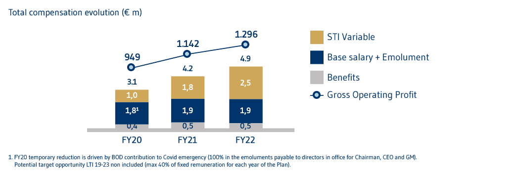 In linea con le migliori prassi internazionali, le nostre politiche di remunerazione per il top management riflettono un adeguato equilibrio tra remunerazione fissa e variabile, con l’obiettivo di evitare rischi e comportamenti orientati al breve termine.