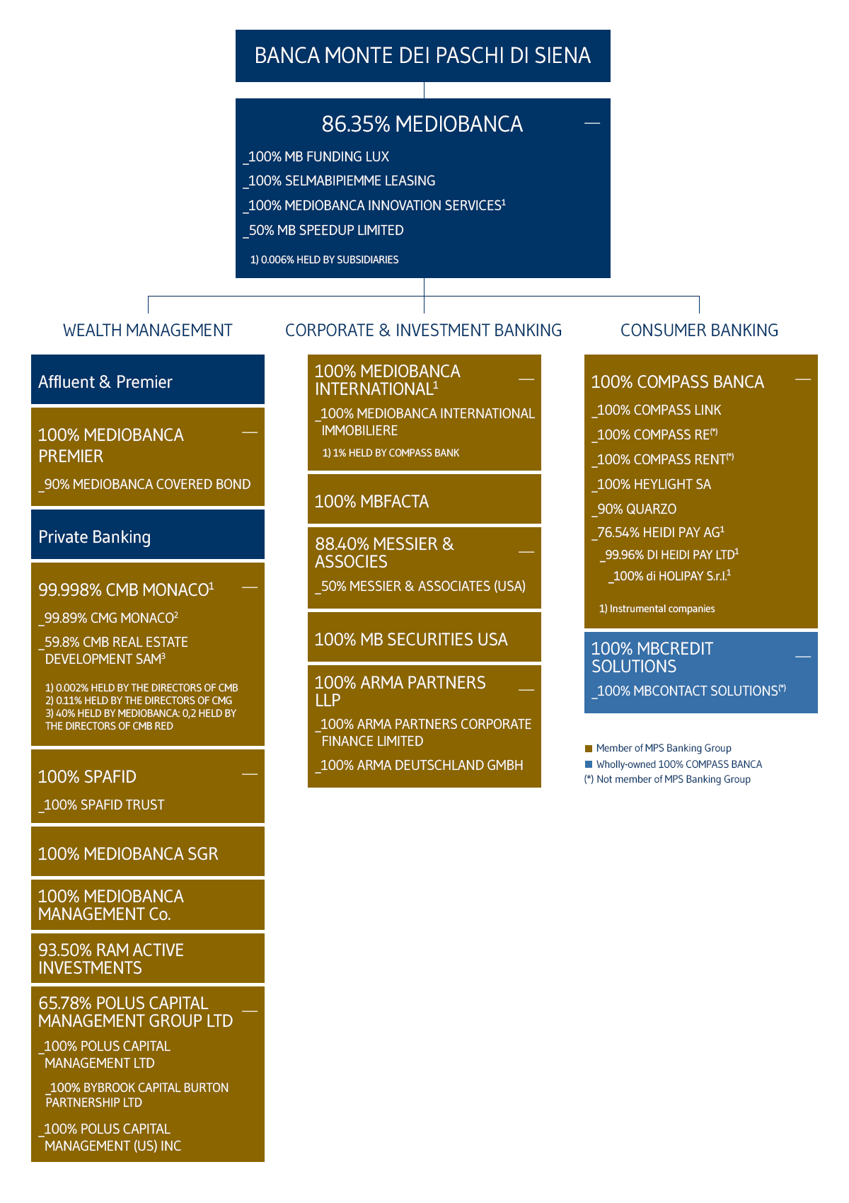 In September 2025, following the completion of the public acquisition and exchange offer launched by MPS for 100% of the Bank’s shares, Mediobanca became part of the Banca Monte dei Paschi di Siena S.p.A. group.